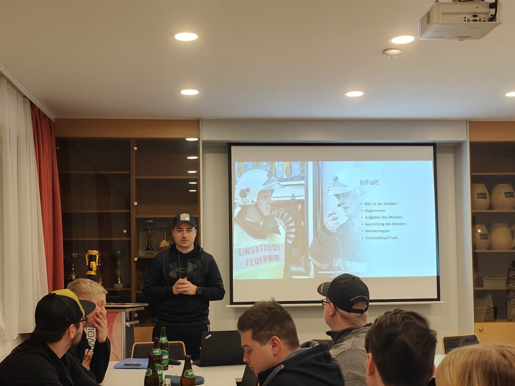 OBI Ing. Manuel ESTERL brachte unseren Kameradinnen und Kameraden die Wichtigkeit des Melderwesens nahe. Das umfasst Aufgaben und Ausrüstung des Melders, Zusammenarbeit mit dem Einsatzleiter, Inhalte der Meldermappe und Einsatzablauf sowie Funk aus Sicht des Melders.