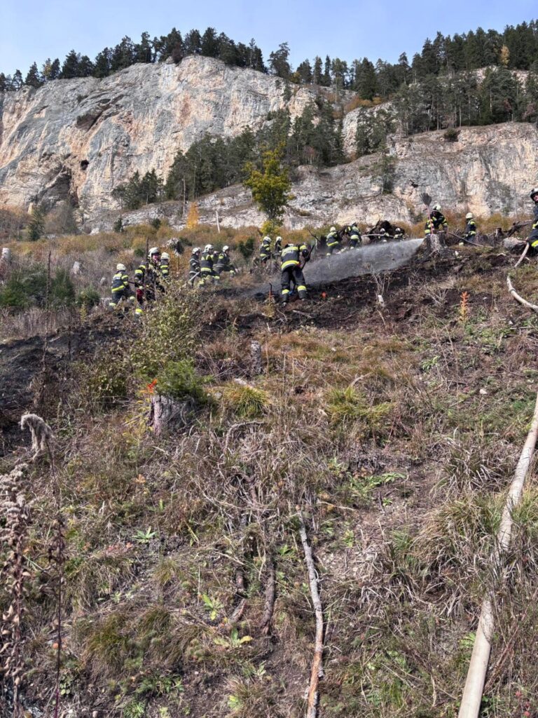 Gemeinsam wurde der Brand im steilen, unwegsamen Gelände mittels Feuerpatsche und der Vornahme mehrerer C-Rohre bekämpft. Die Lage konnte schließlich unter Kontrolle gebracht werden.