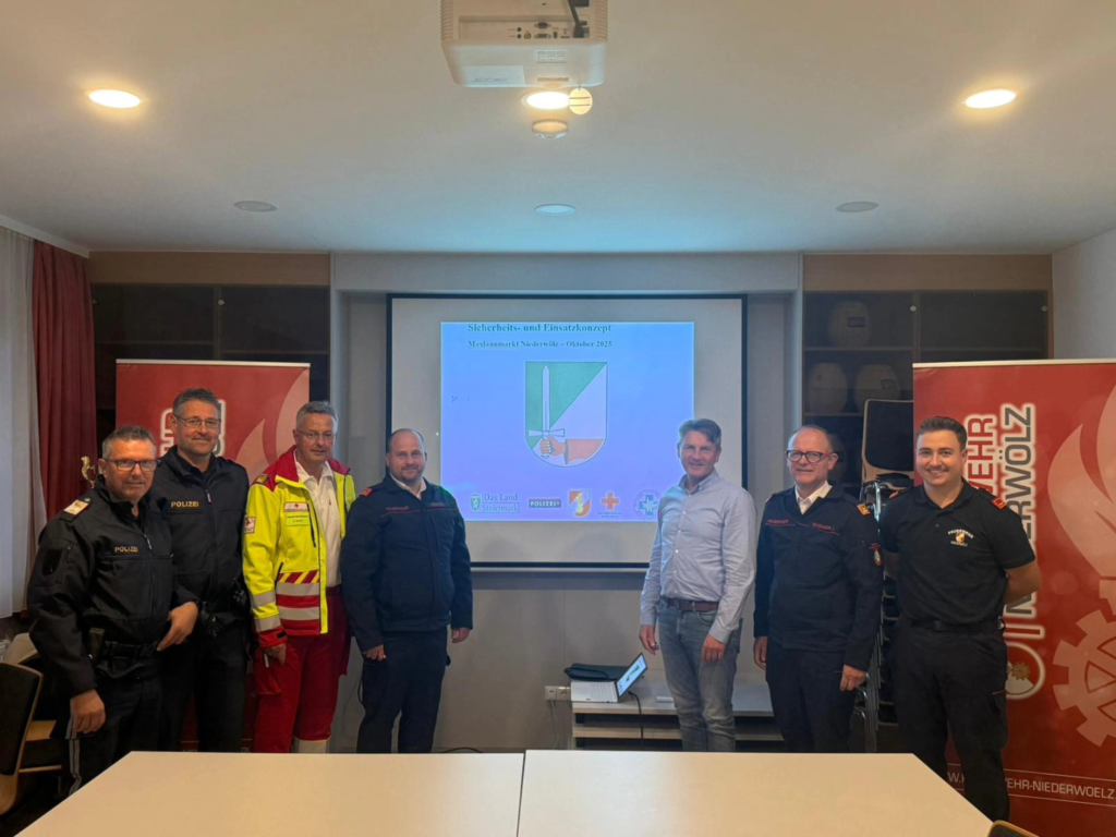 Am Samstag, 27.09.2025, fand eine Sicherheitsbesprechung für den diesjährigen Maxlaunmarkt statt, an der Rotes Kreuz, Polizei und Feuerwehr beteiligt waren, sowie Bgm. Albert BRUNNER. Auch Bereichsfeuerwehrkommandant OBR Johann RITZINGER war dabei anwesend.
